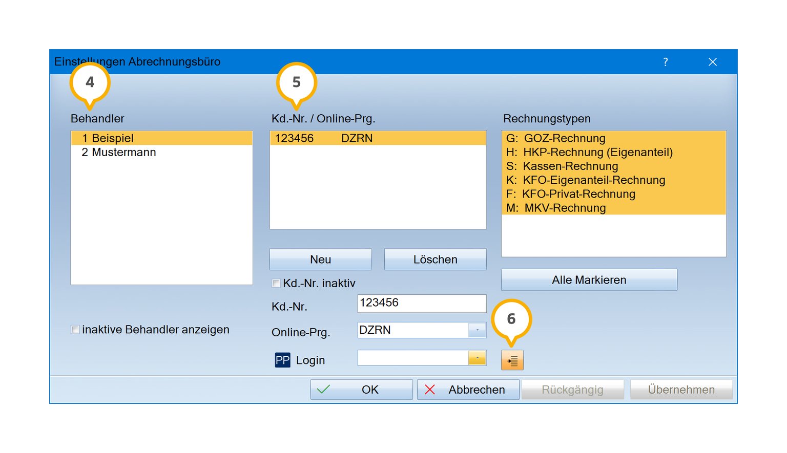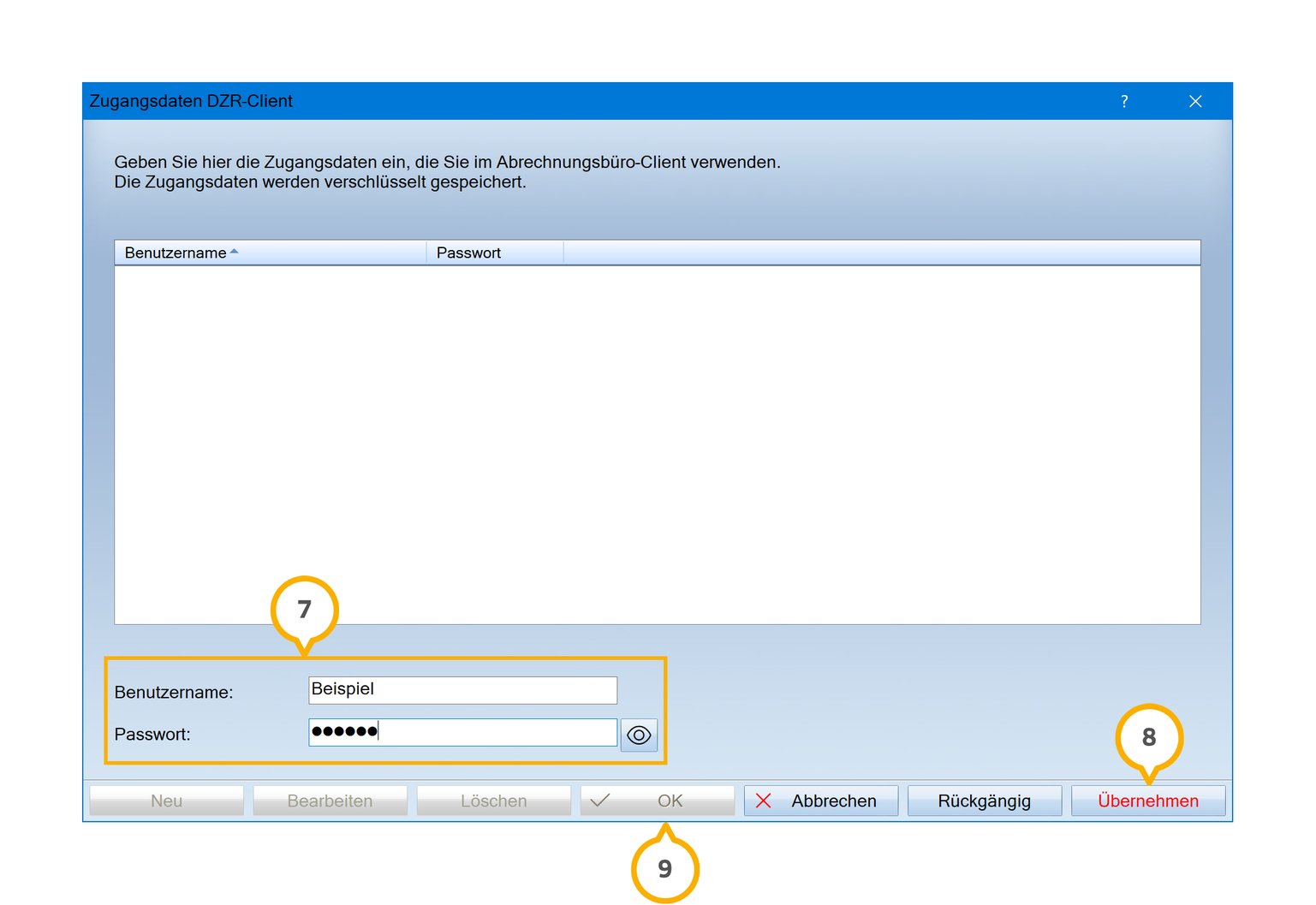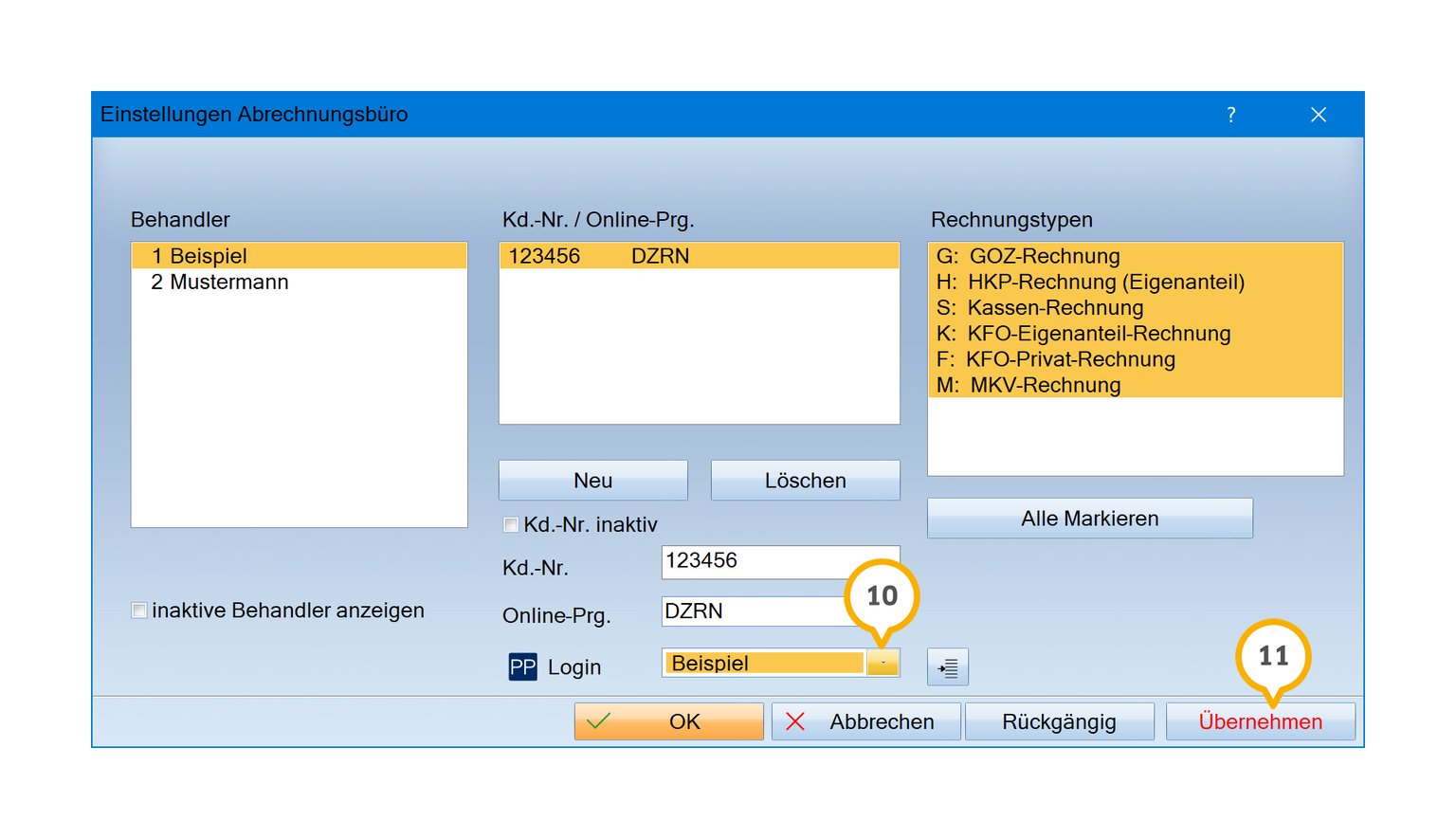 Speichern Sie Ihre Angaben mit >>Übernehmen<<.