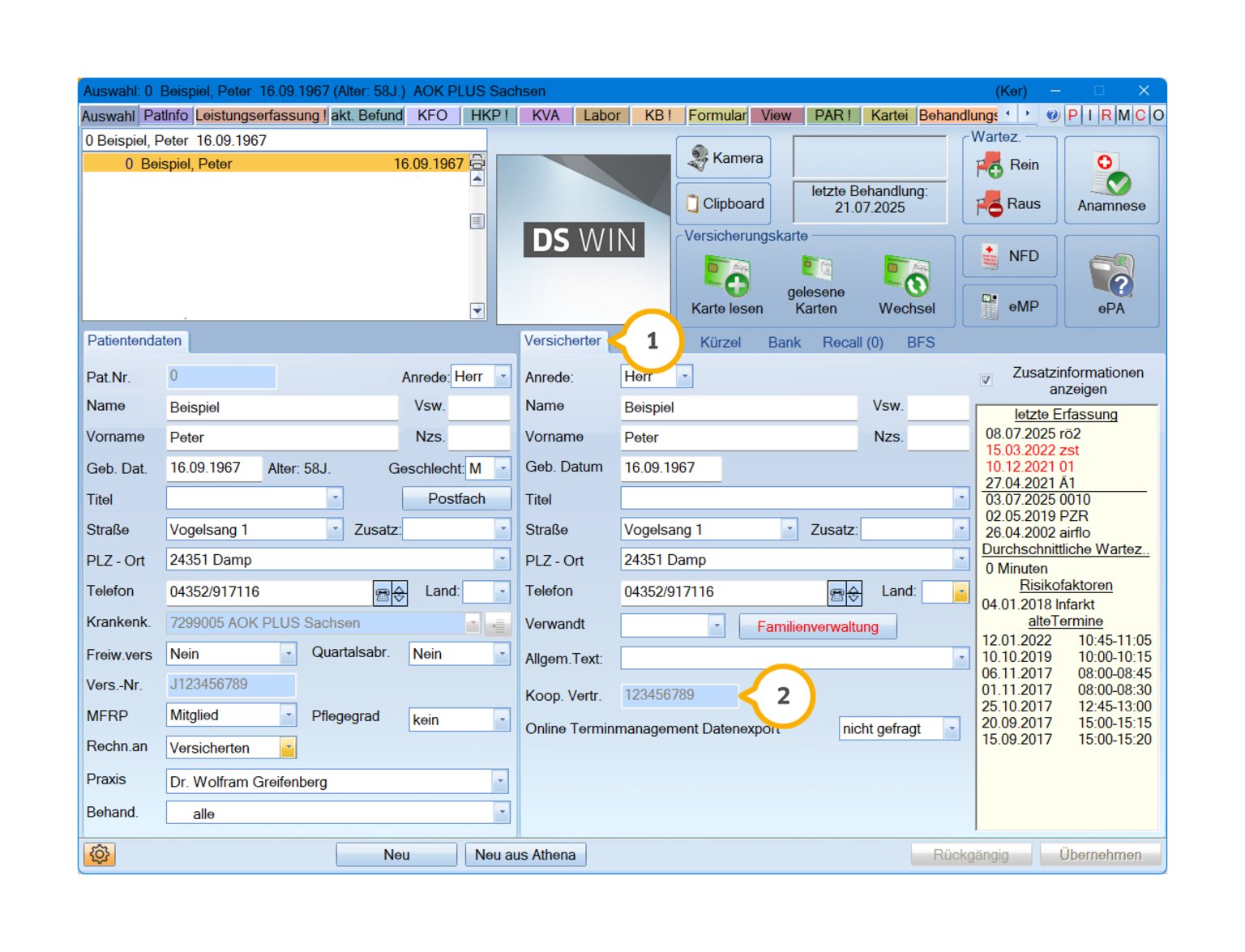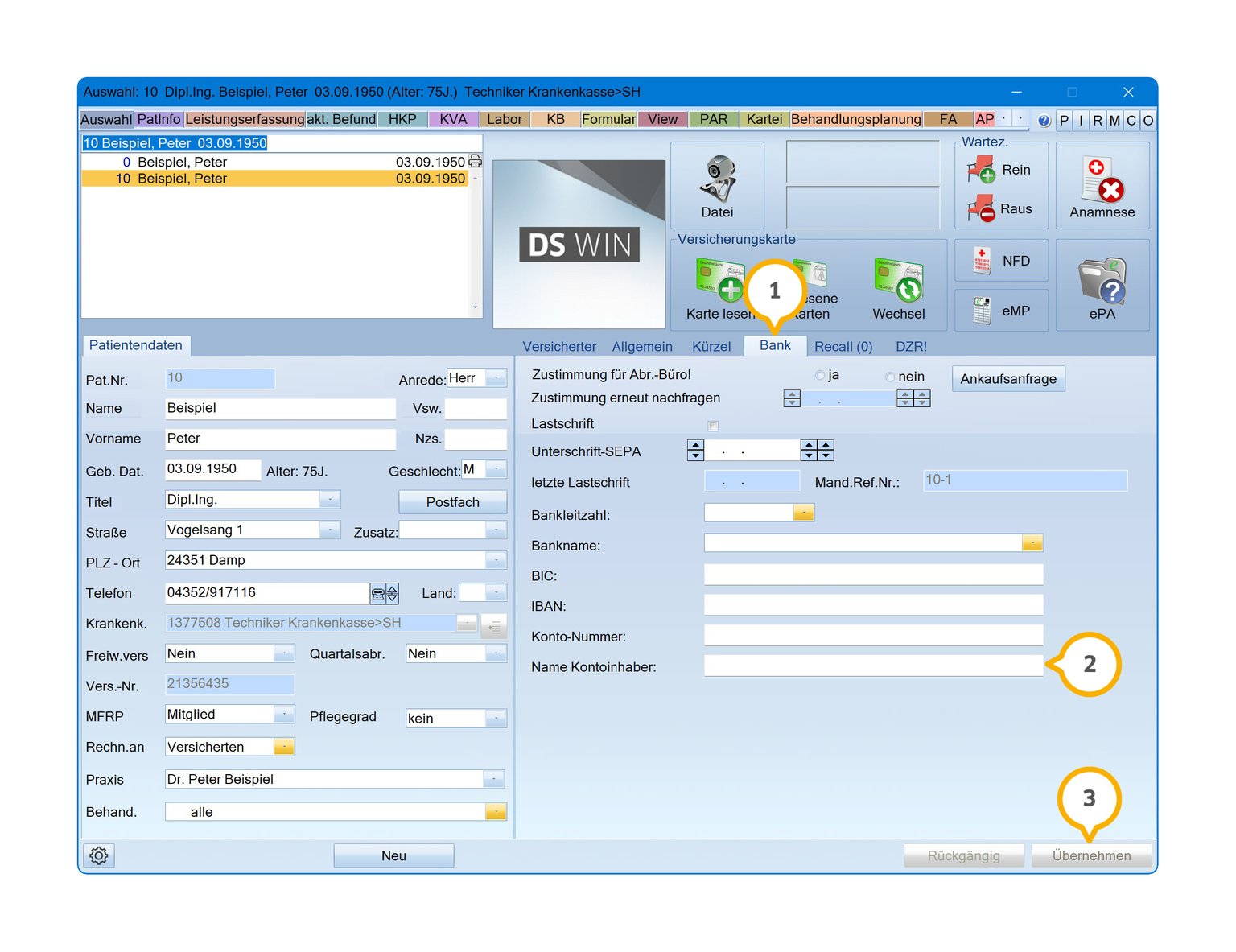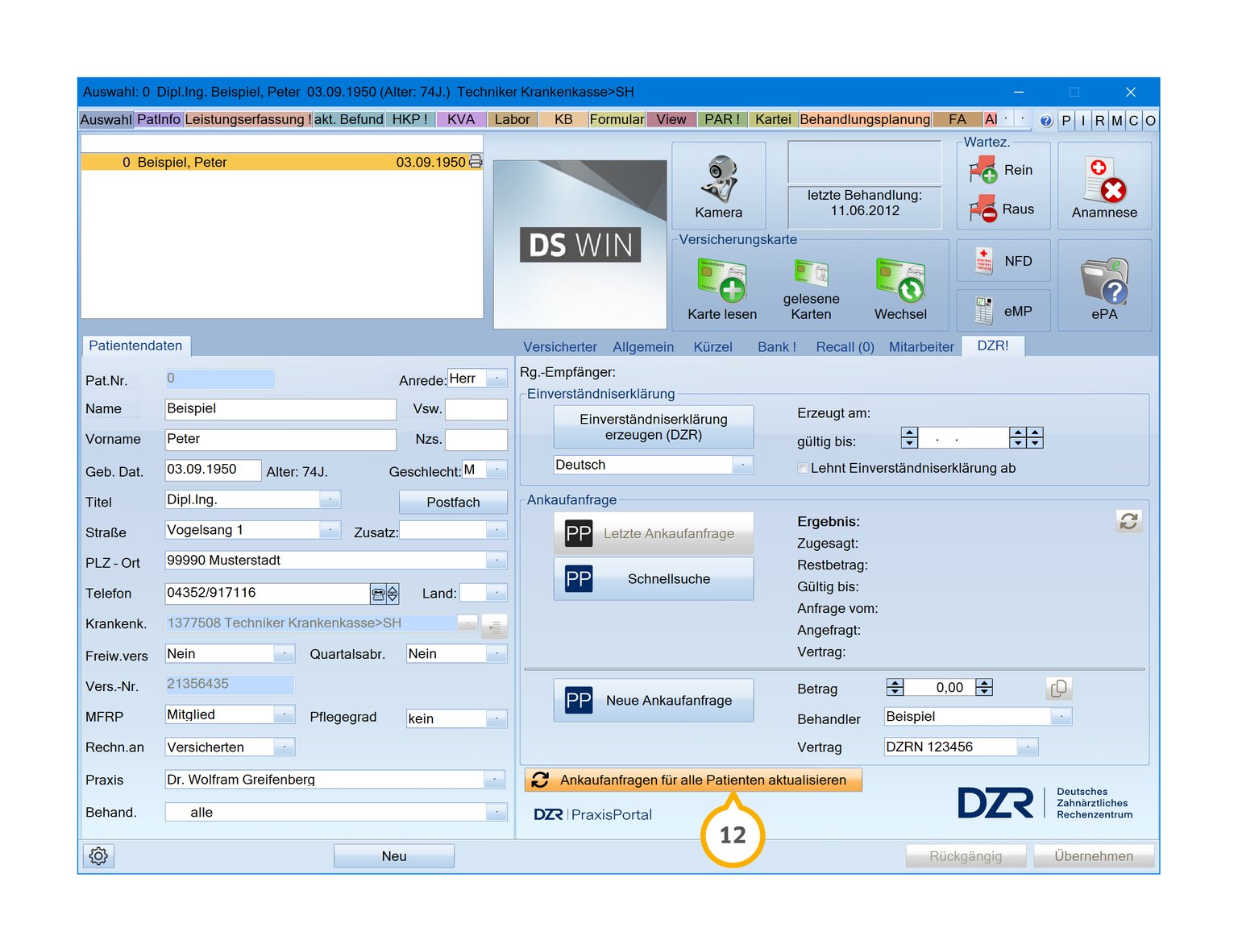 Öffnen Sie im DS-Win über die Patientenauswahl den gewünschten Patienten.