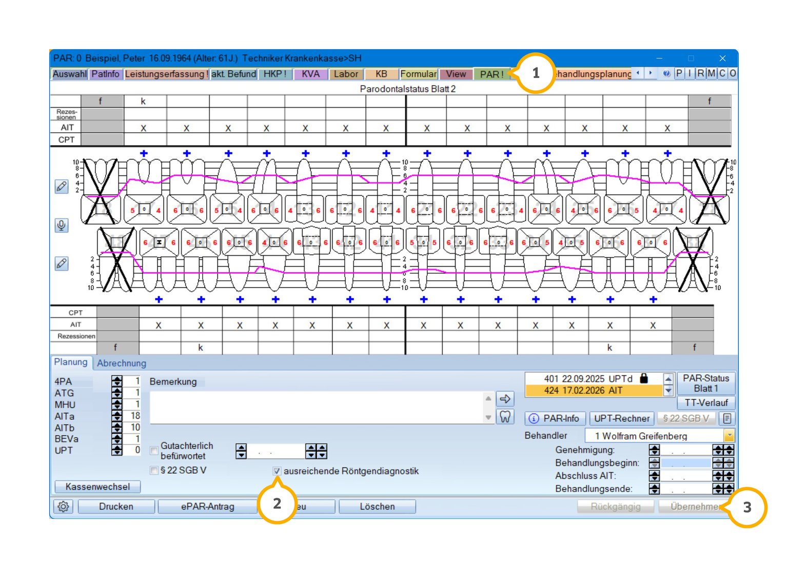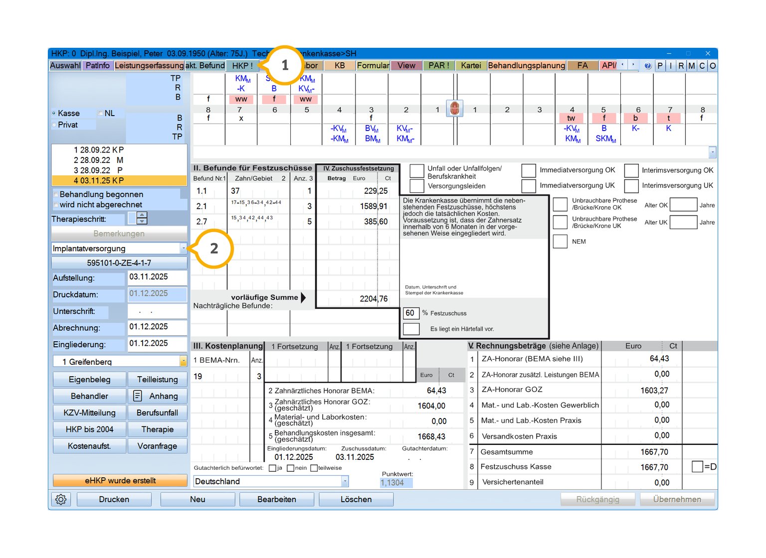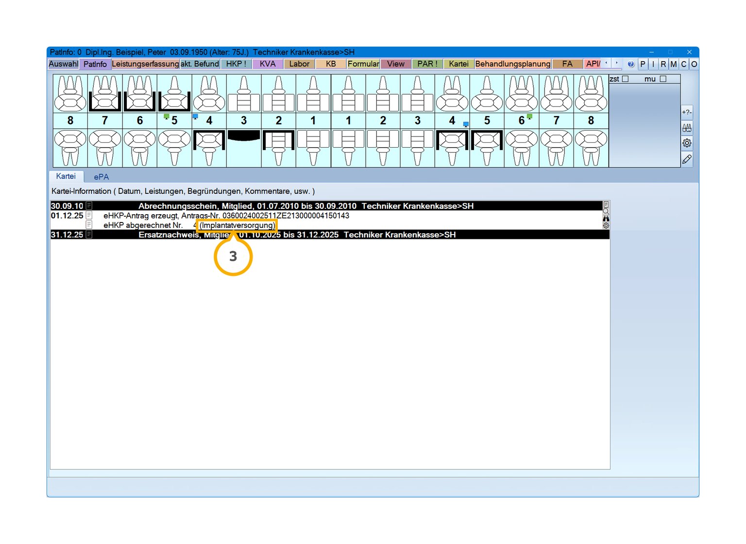 erhalten Sie die Übersicht mit Ihren Planungskürzeln. Das Zahnschema wird aus der HKP-Planung übernommen.