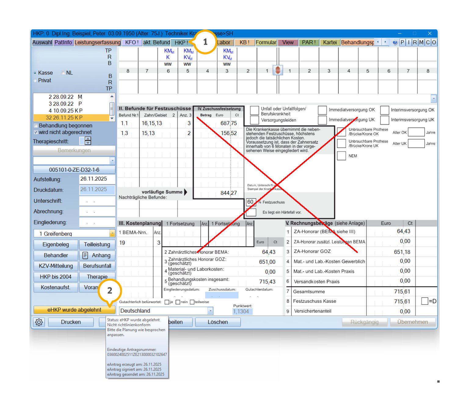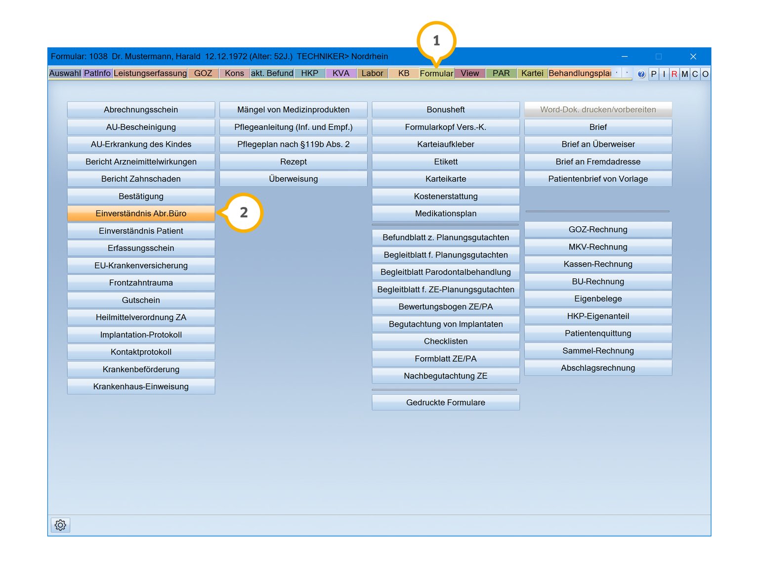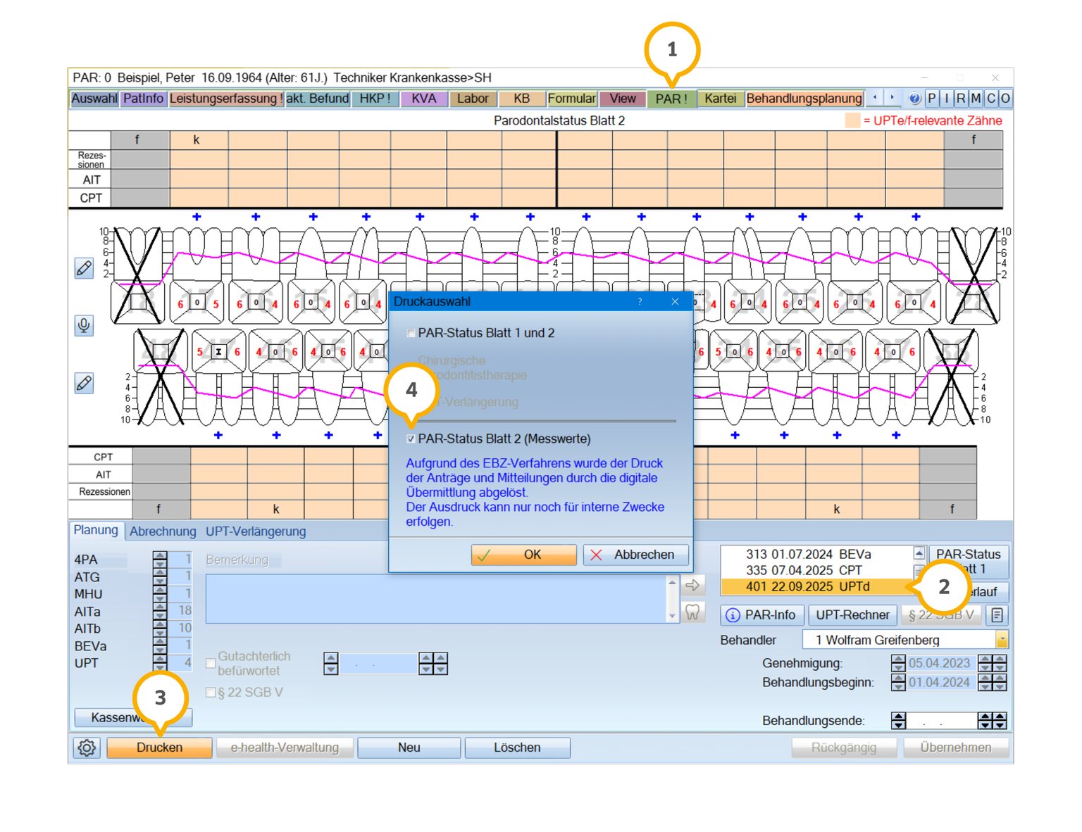 erhalten Sie die Übersicht mit Ihren Planungskürzeln. Das Zahnschema wird aus der HKP-Planung übernommen.