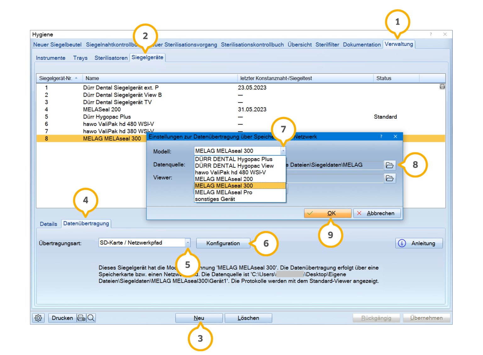 einzugeben oder über die Auswahlliste hinzuzufügen. Geben Sie die Anzahl der mitgelieferten Arbeiten mittels der Peiltasten an. Wählen Sie aus, ob die mitgelieferte Arbeit in Ordnung ist, indem Sie ein Häkchen bei „in Ordnung“ setzen.